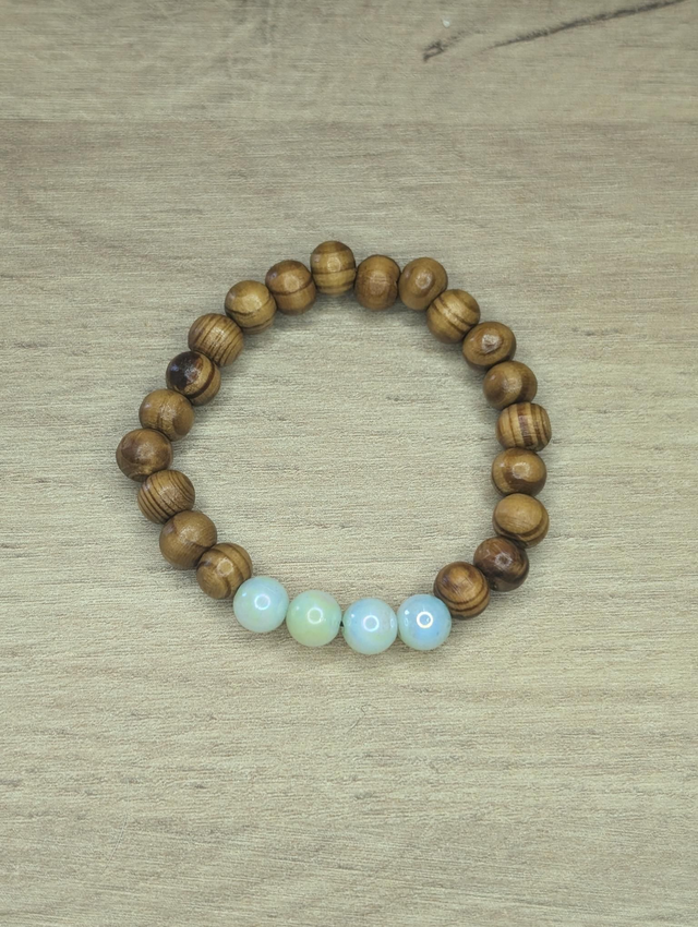 Ici, perles de bois ainsi que 4 perles en acrylique